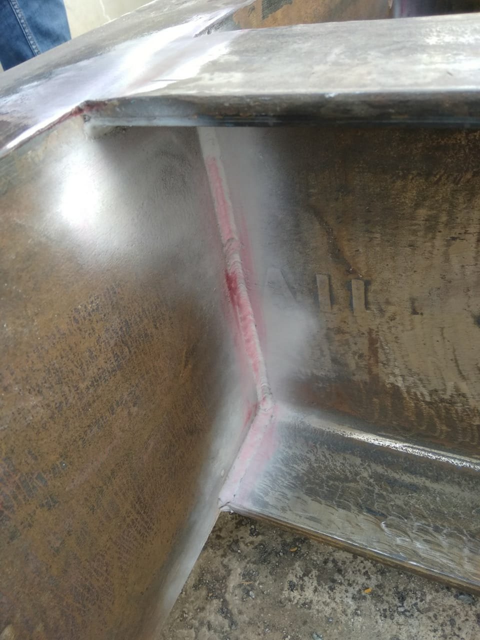 After this, inspectors use a developer to draw the solution out of the defects, then use ultraviolet light to reveal imperfections (for fluorescent dyes). For regular dyes, the color shows in the contrast between the penetrant and the developer.